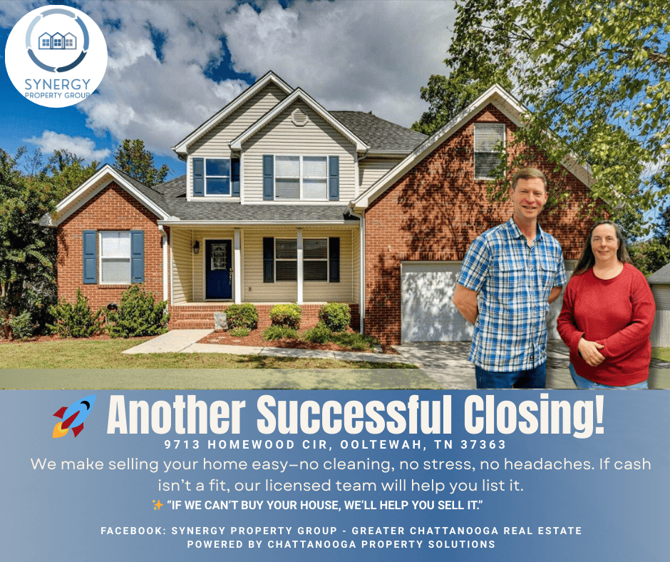 Joanie had raised her family in their Hixson home, but being closer to grandkids was an important next step. 𝗧𝗵𝗲 𝗵𝗼𝘂𝘀𝗲 𝗻𝗲𝗲𝗱𝗲𝗱 𝗮 𝗳𝗲𝘄 𝗯𝗶𝗴 𝗿𝗲𝗽𝗮𝗶𝗿𝘀, 𝗯𝘂𝘁 𝘄𝗲 𝗰𝗹𝗼𝘀𝗲𝗱 𝗼𝗻 𝗶𝘁 𝘄𝗶𝘁𝗵 𝗻𝗼𝘁𝗵𝗶𝗻𝗴 𝗿𝗲𝗾𝘂𝗶𝗿𝗲𝗱 𝘁𝗼 𝗯𝗲 𝗳𝗶𝘅𝗲𝗱. The process was smooth, and while she focused on the new home, we put the closing together. We met again at the title company, and wrapped things up in about 5 minutes. We're thrilled that she was so happy with our process and wish her the very best!